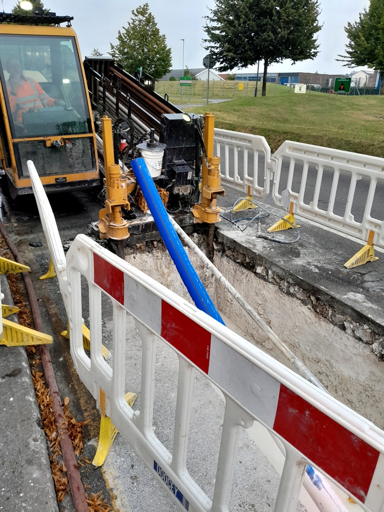 The installation of the off site works was completed with the use of our Directional Drill division. This ensured that the local network and access to the camp was maintained with limited disruption and reduced the time for traffic network interruption limiting the amount of requirement for excavation, this also meant that if the need arose for the route to be used as a diversion for the local network, we were able to demobilise within a few hours.
