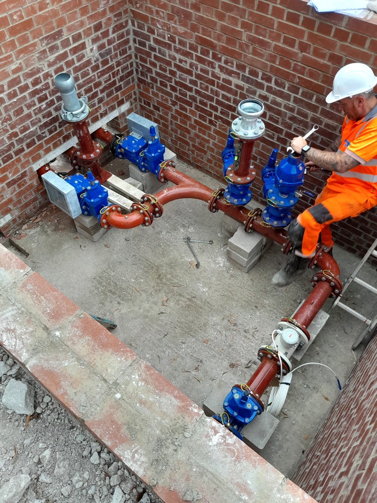 • Installation of PRV, Meter and None return Valve inc construction of new chambers